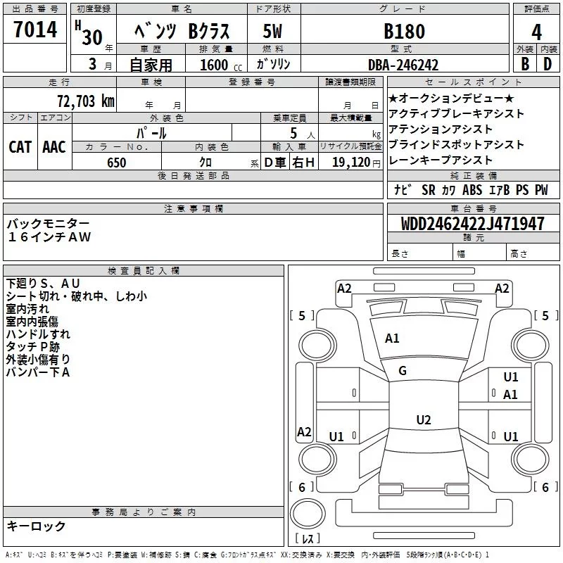 Mercedes-Benz B CLASS с аукциона Японии TAA Kanto лот № 7014