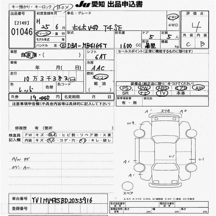 Volvo V40 с аукциона Японии JU Aichi лот № 1046