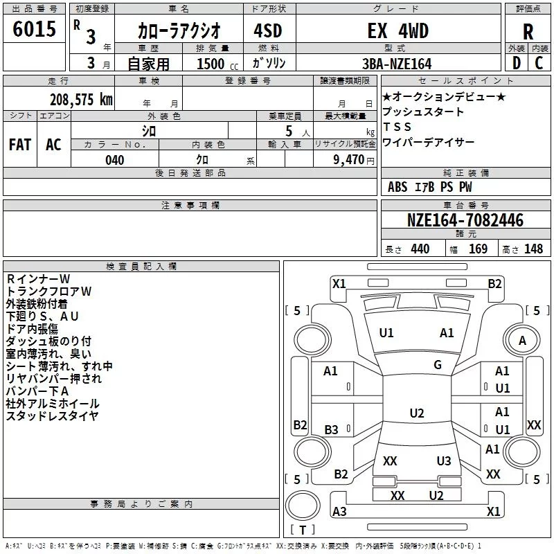 Toyota COROLLA AXIO с аукциона Японии TAA Hokkaido лот № 6015