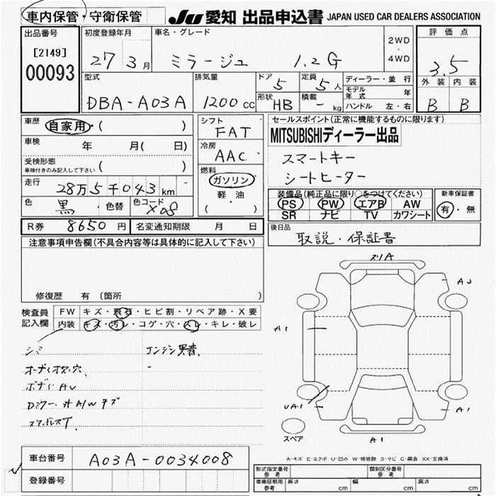 Mitsubishi MIRAGE с аукциона Японии JU Aichi лот № 93