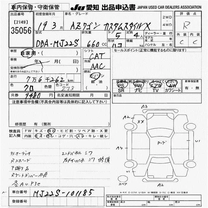 Mazda AZ WAGON с аукциона Японии JU Aichi лот № 35056