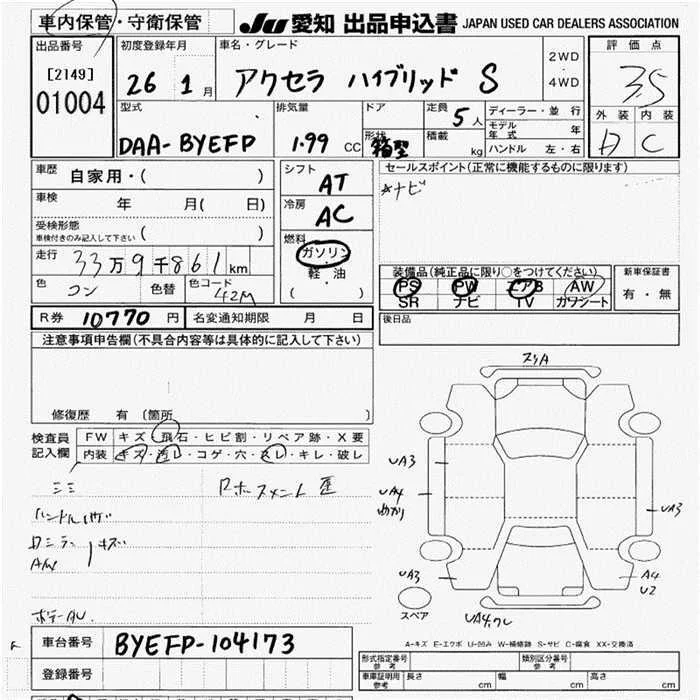 Mazda AXELA с аукциона Японии JU Aichi лот № 1004