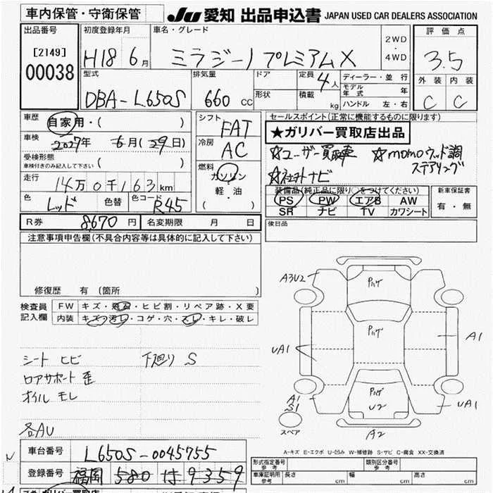 Daihatsu MIRA с аукциона Японии JU Aichi лот № 38