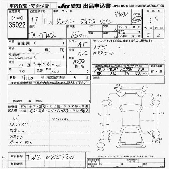 Subaru GOLF ALLTRACK с аукциона Японии JU Aichi лот № 35022