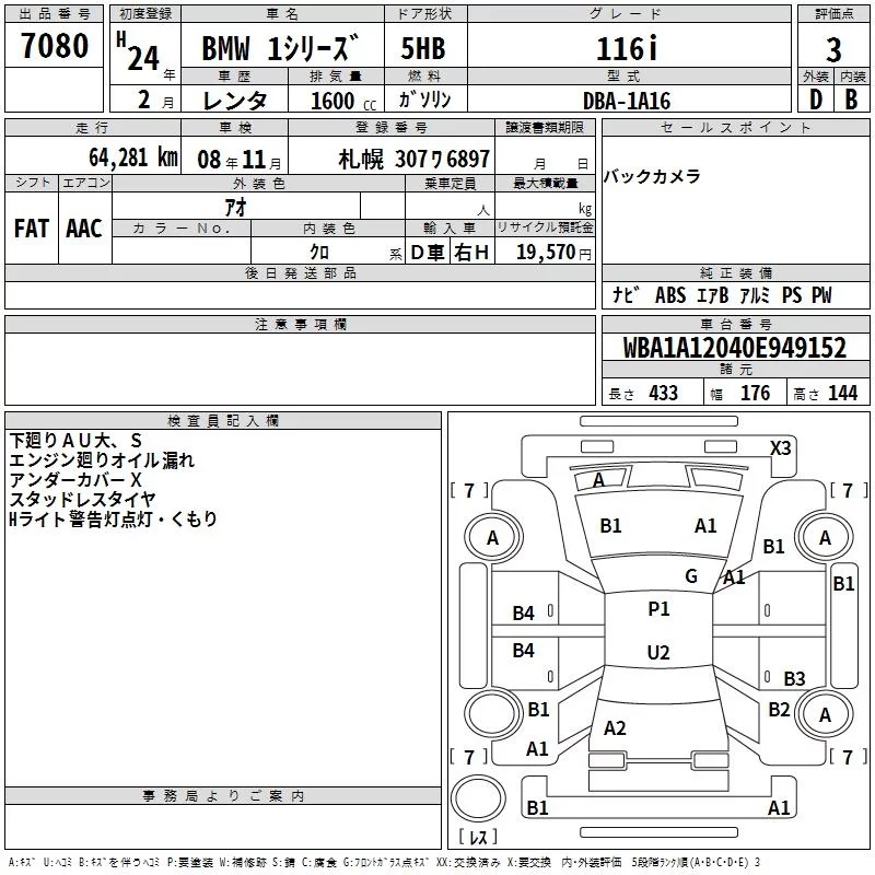BMW 1-Series с аукциона Японии TAA Hokkaido лот № 7080