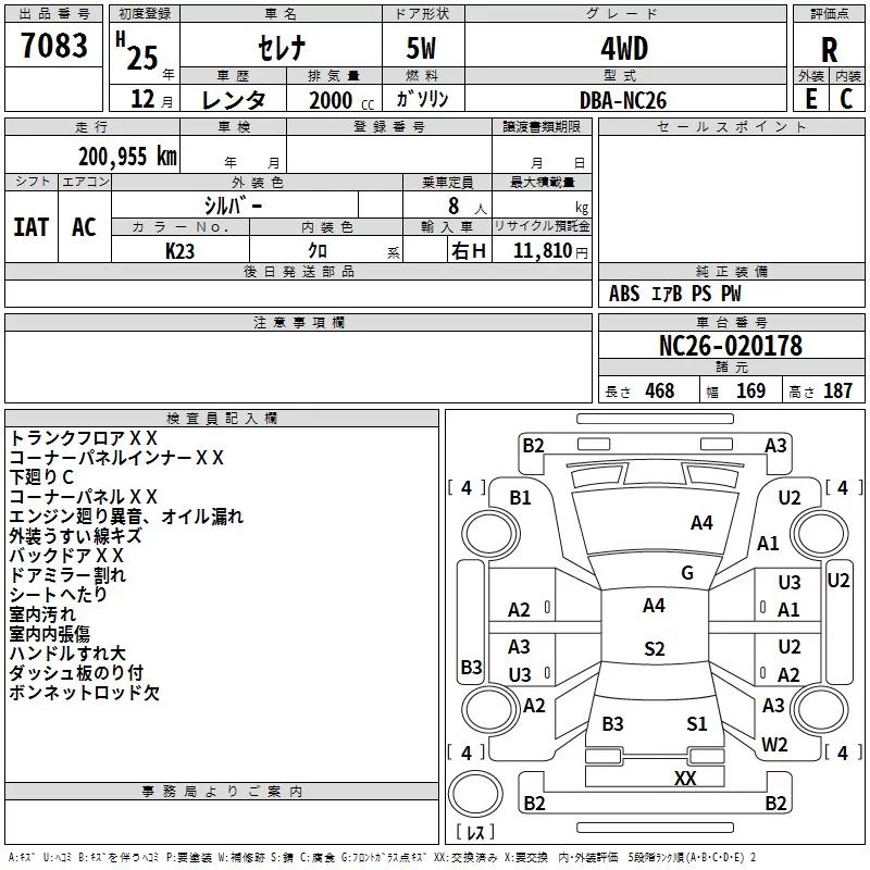 Nissan SERENA с аукциона Японии TAA Hokkaido лот № 7083