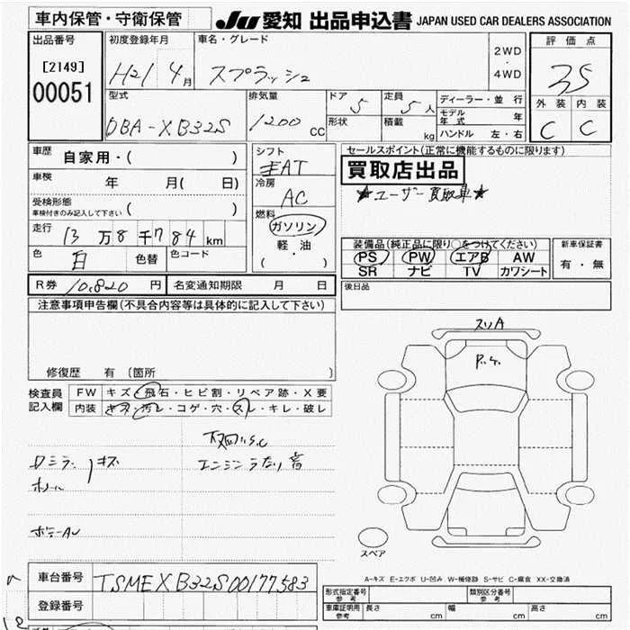Suzuki SPLASH с аукциона Японии JU Aichi лот № 51