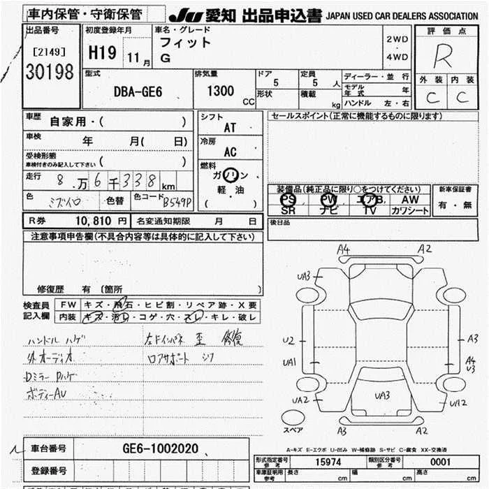 Honda FIT с аукциона Японии JU Aichi лот № 30198
