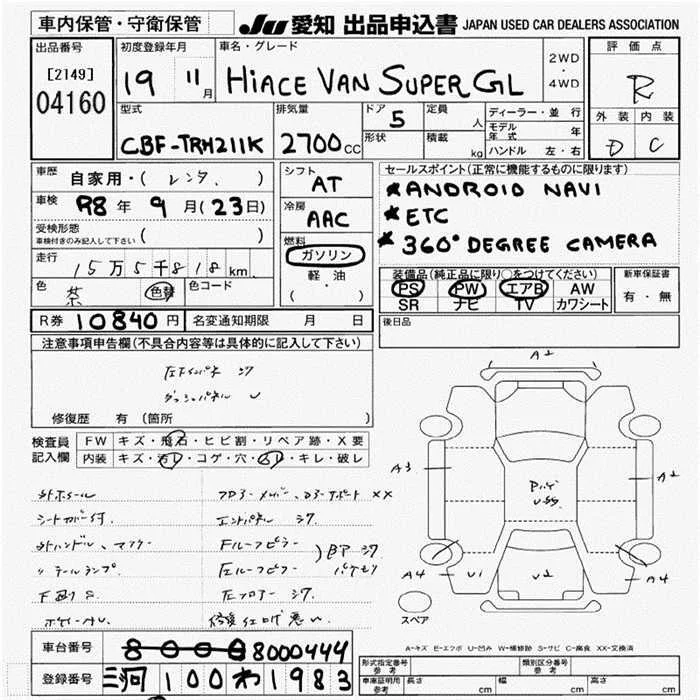 Toyota HIACE VAN с аукциона Японии JU Aichi лот № 4160