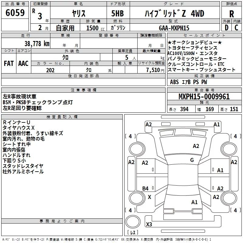 Toyota YARIS с аукциона Японии TAA Hokkaido лот № 6059