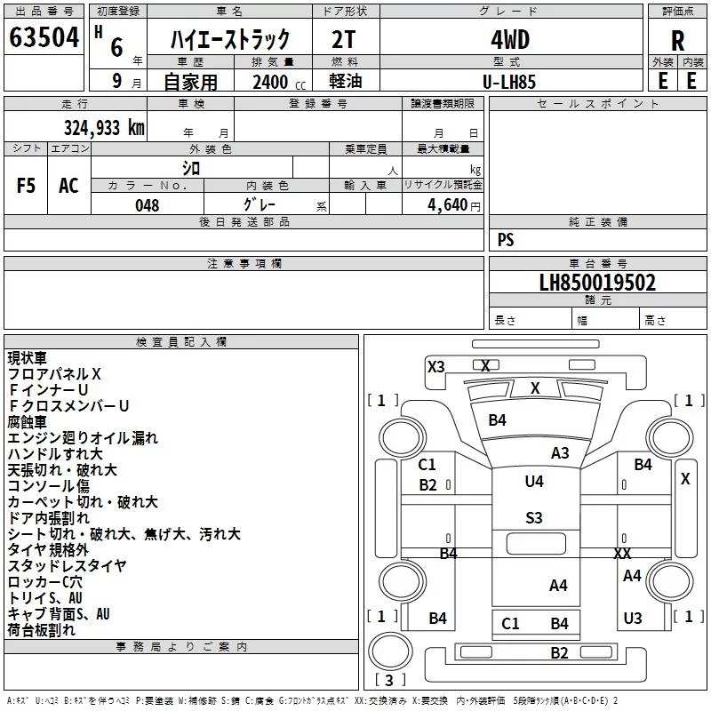Toyota HIACE TRUCK с аукциона Японии TAA Hokkaido лот № 63504
