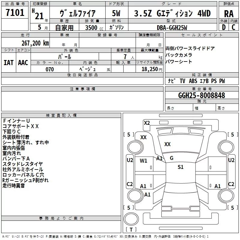 Toyota VELLFIRE с аукциона Японии TAA Hokkaido лот № 7101