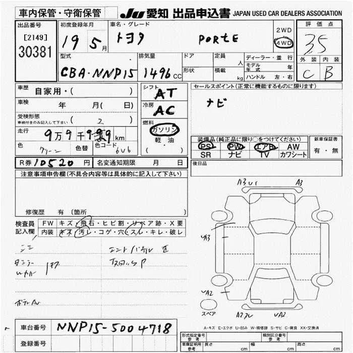 Toyota PORTE с аукциона Японии JU Aichi лот № 30381