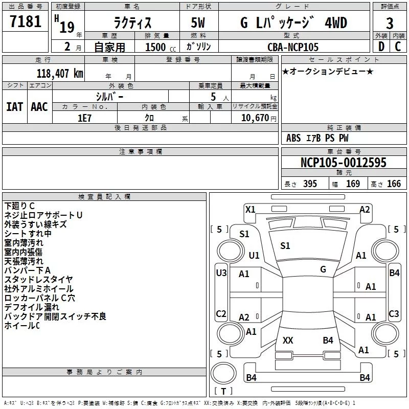 Toyota RACTIS с аукциона Японии TAA Hokkaido лот № 7181