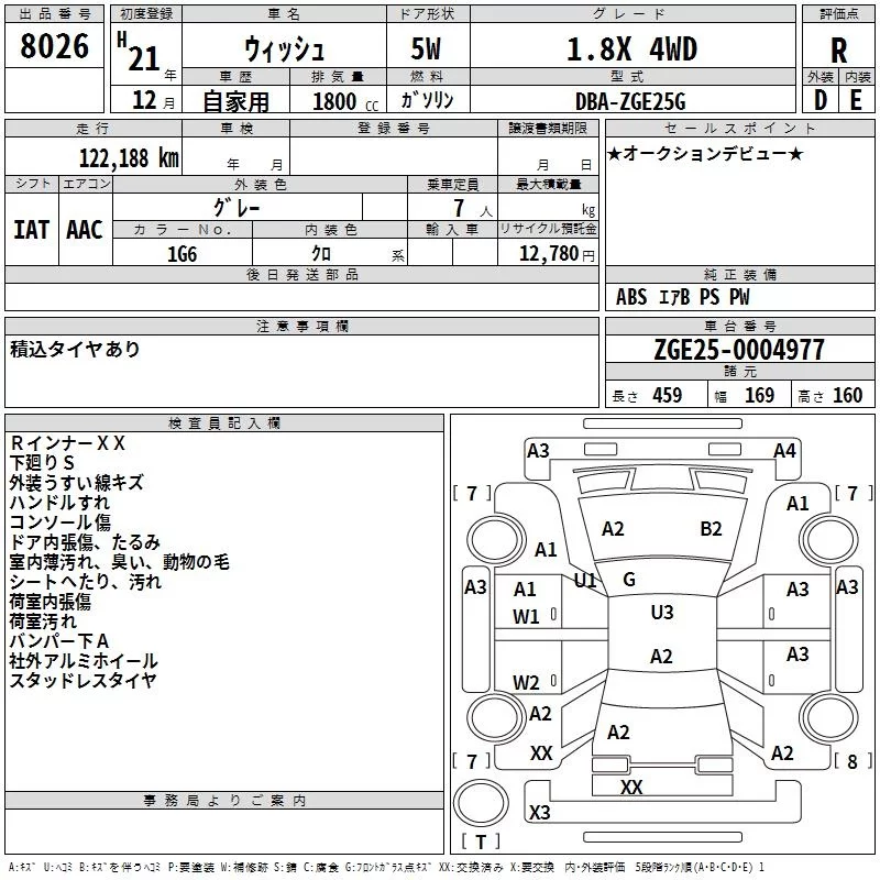 Toyota WISH с аукциона Японии TAA Hokkaido лот № 8026