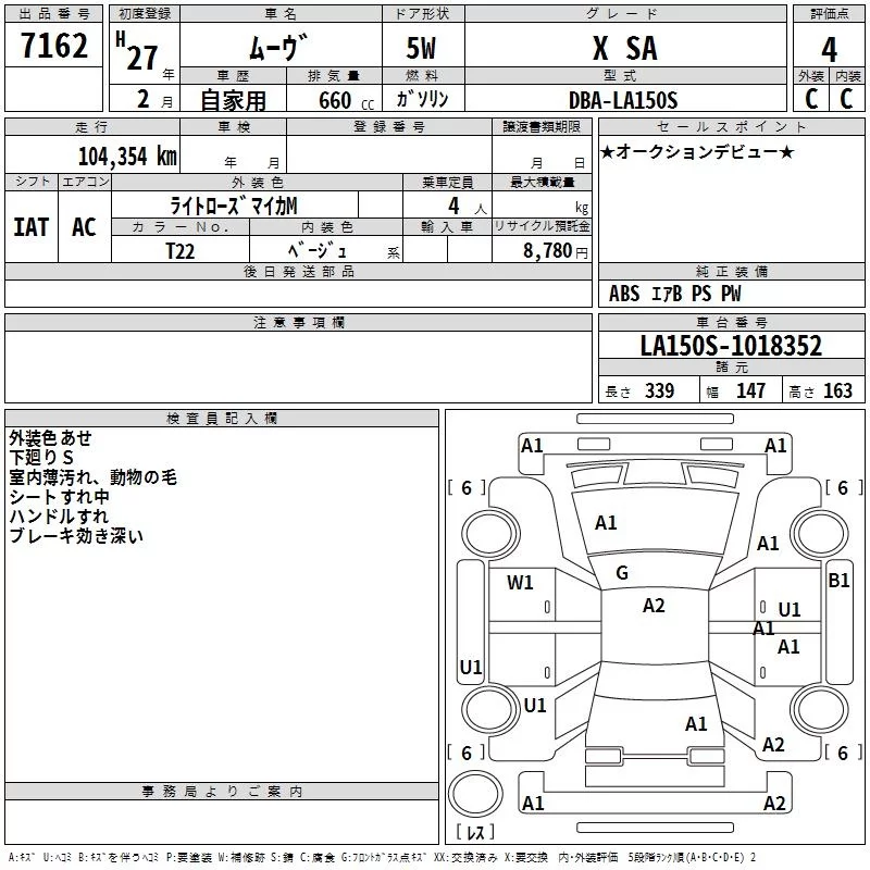 Daihatsu MOVE с аукциона Японии TAA Hokkaido лот № 7162