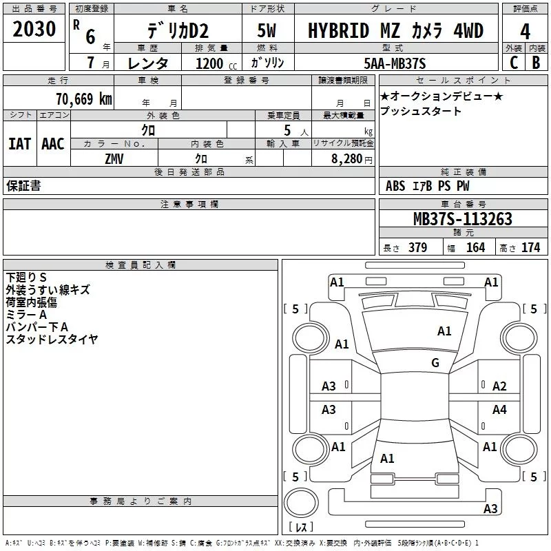Mitsubishi DELICA D2 с аукциона Японии TAA Hokkaido лот № 2030