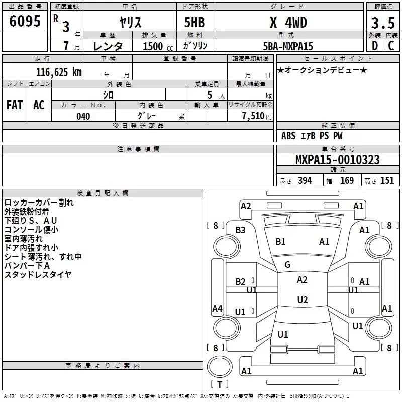 Toyota YARIS с аукциона Японии TAA Hokkaido лот № 6095