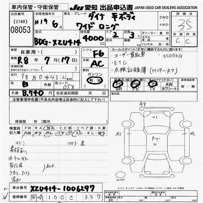 Toyota DYNA с аукциона Японии JU Aichi лот № 8053