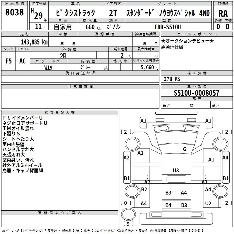 Toyota PIXIS TRUCK с аукциона Японии TAA Hokkaido лот № 8038