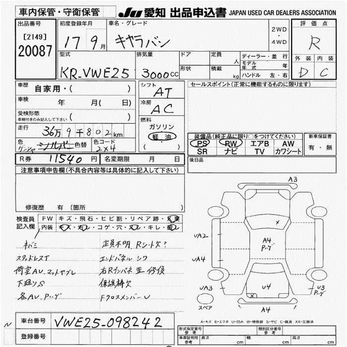 Nissan CARAVAN VAN с аукциона Японии JU Aichi лот № 20087