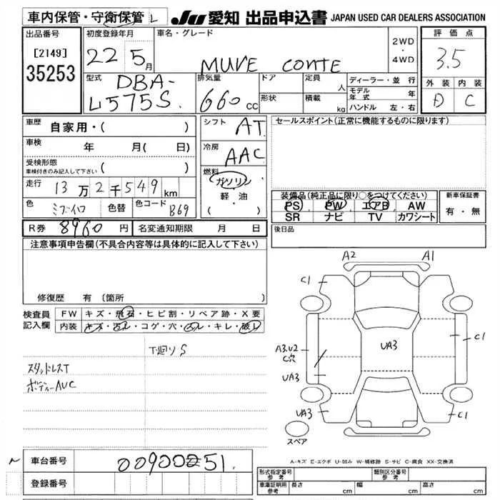 Daihatsu MOVE CONTE с аукциона Японии JU Aichi лот № 35253