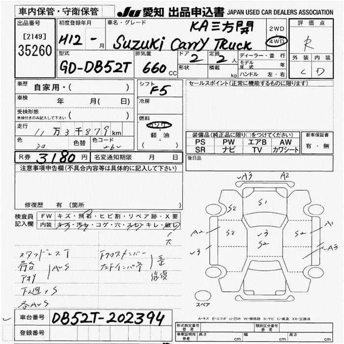 Suzuki CARRY TRUCK с аукциона Японии JU Aichi лот № 35260