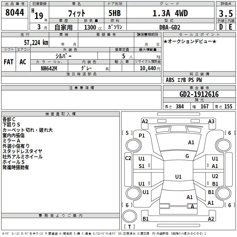 Honda FIT с аукциона Японии TAA Hokkaido лот № 8044