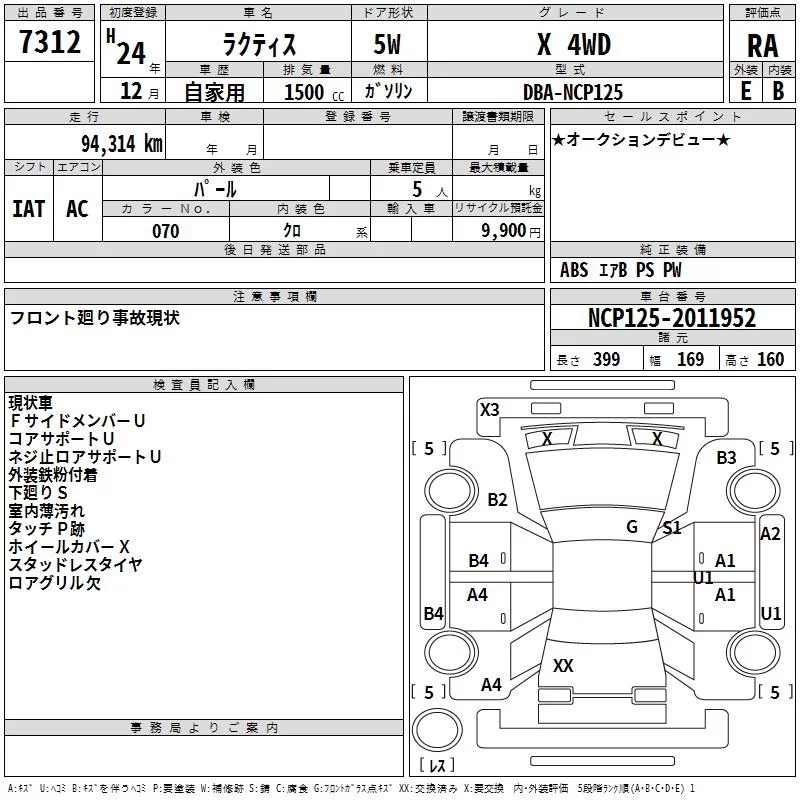 Toyota RACTIS с аукциона Японии TAA Hokkaido лот № 7312