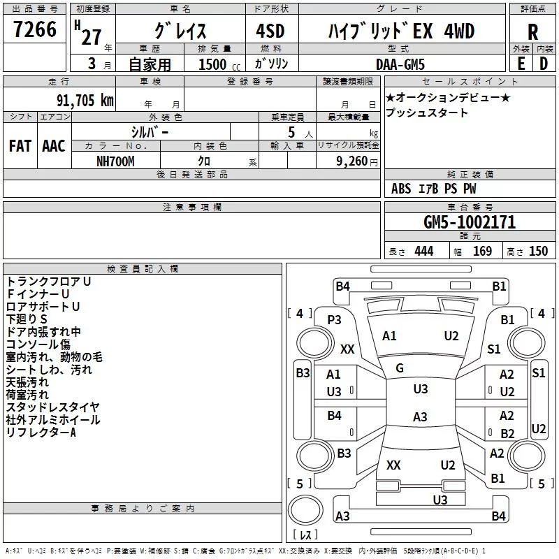 Honda GRACE с аукциона Японии TAA Hokkaido лот № 7266