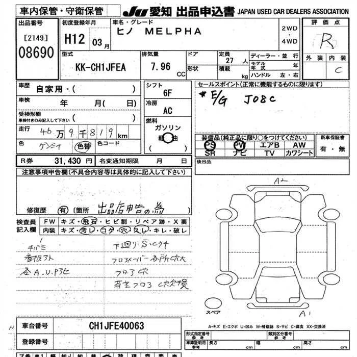 Hino MELPHA с аукциона Японии JU Aichi лот № 8690