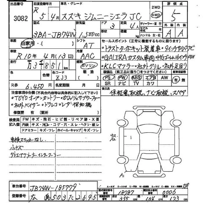 Suzuki JIMNY SIERRA с аукциона Японии JU Hiroshima лот № 3082