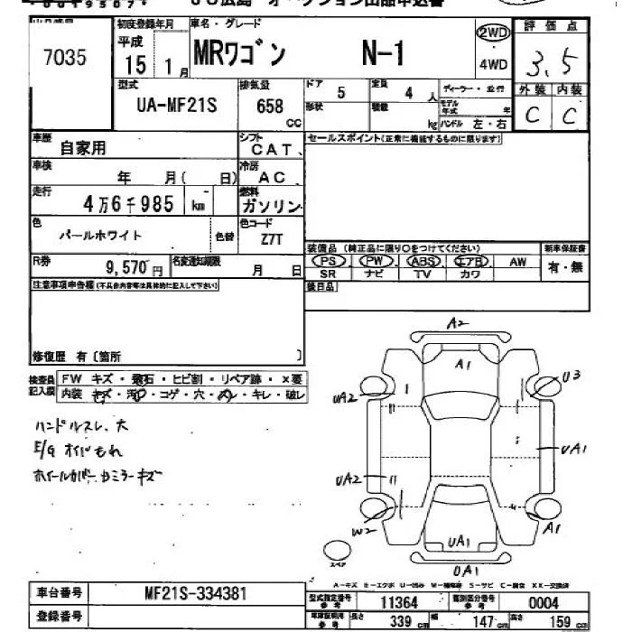 Suzuki MRWAGON с аукциона Японии JU Hiroshima лот № 7035