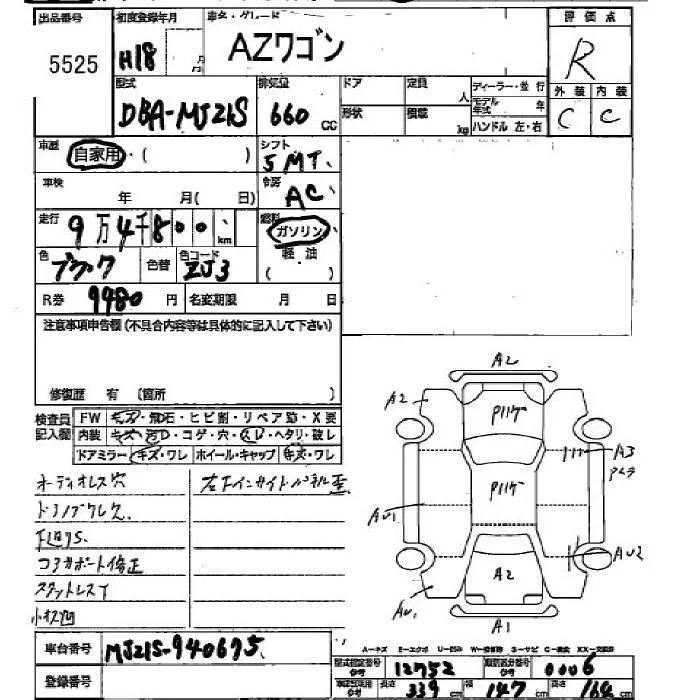 Mazda AZ WAGON с аукциона Японии JU Hiroshima лот № 5525