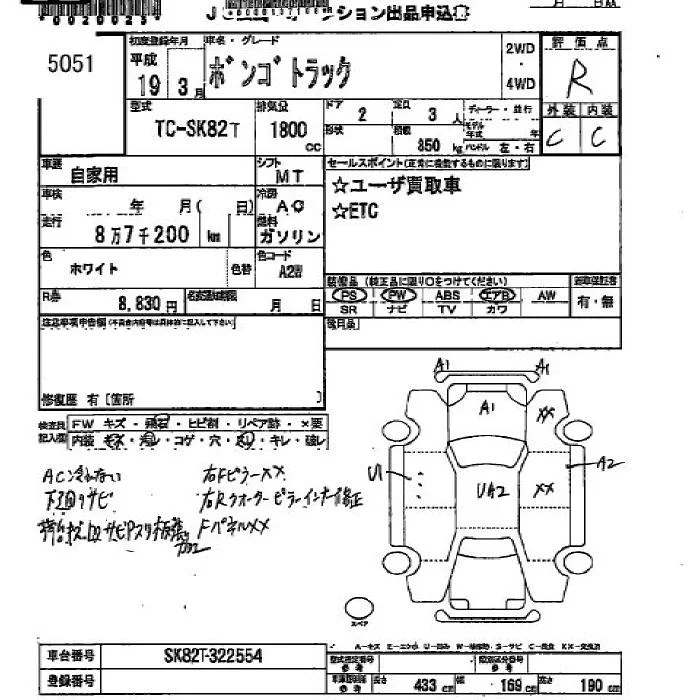 Mazda BONGO с аукциона Японии JU Hiroshima лот № 5051