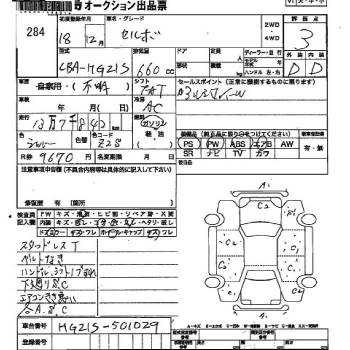 Suzuki CERVO с аукциона Японии JU Hiroshima лот № 284