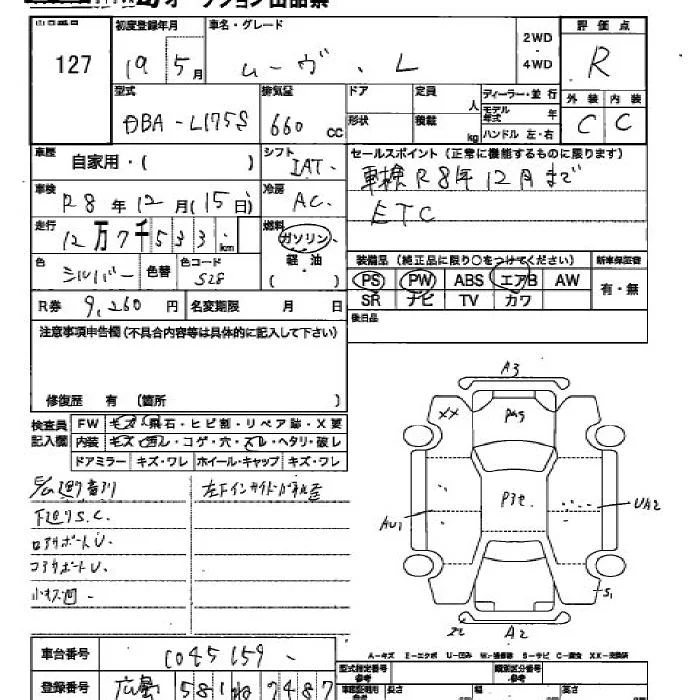 Daihatsu MOVE с аукциона Японии JU Hiroshima лот № 127
