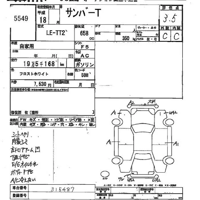 Subaru SAMBAR с аукциона Японии JU Hiroshima лот № 5549