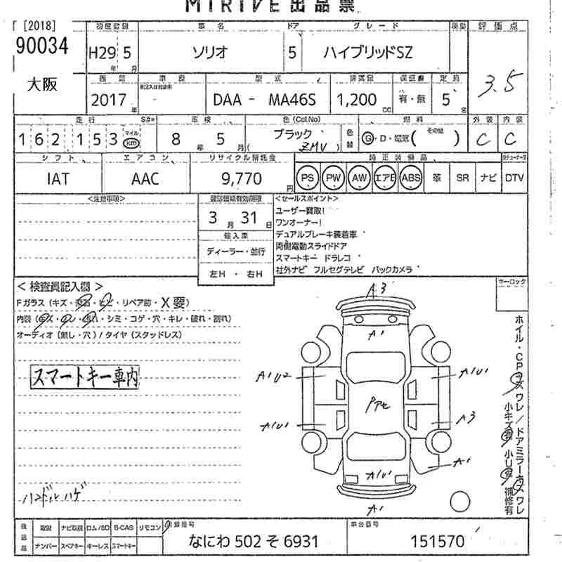 Suzuki SOLIO с аукциона Японии MIRIVE Osaka лот № 90034