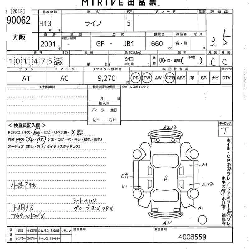 Honda LIFE с аукциона Японии MIRIVE Osaka лот № 90062