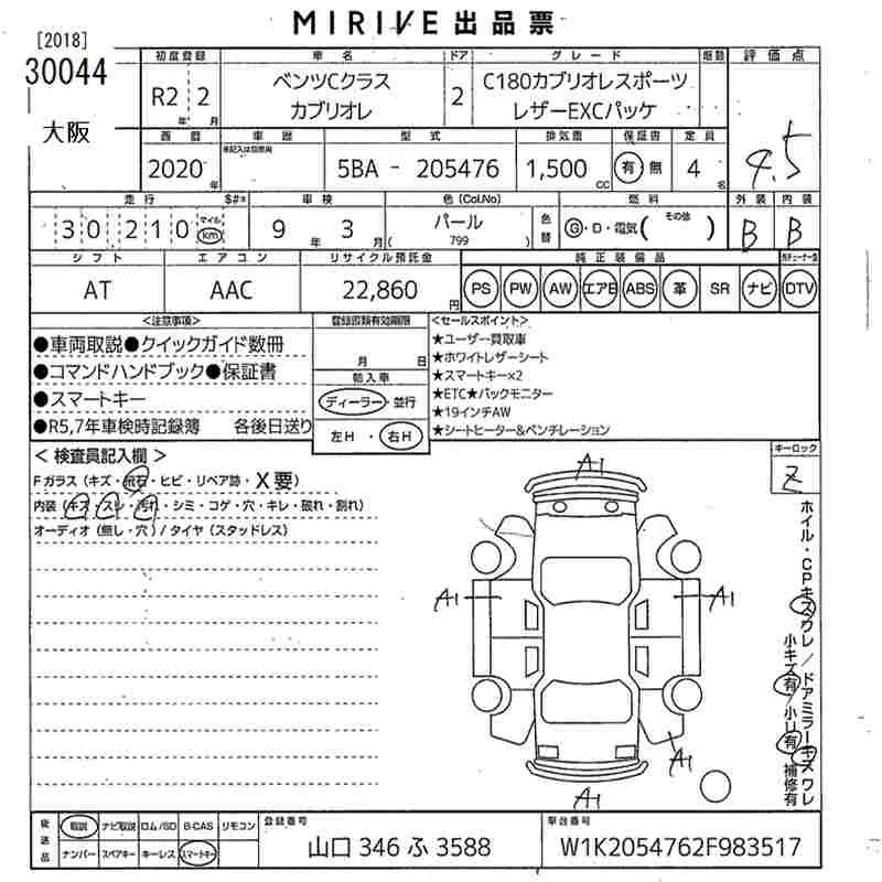 Mercedes-Benz C CLASS с аукциона Японии MIRIVE Osaka лот № 30044