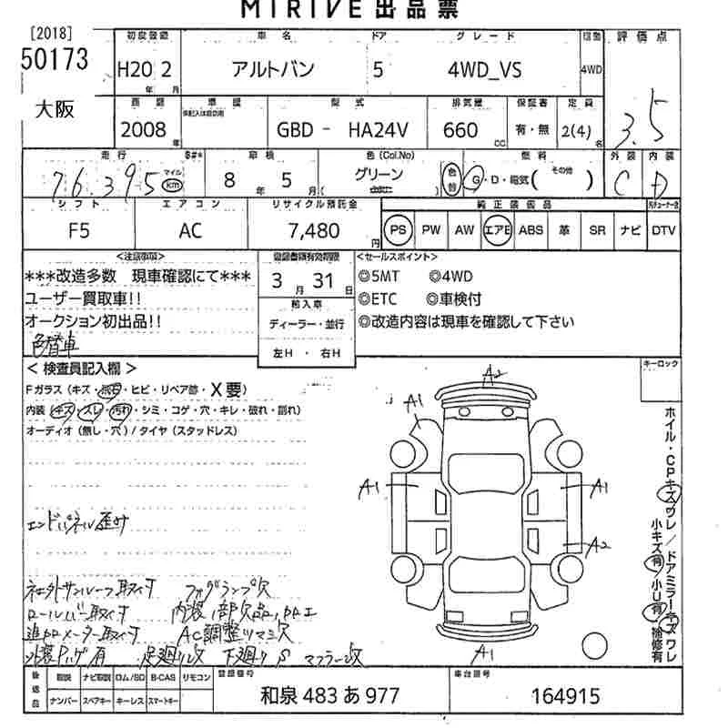 Suzuki ALTO VAN с аукциона Японии MIRIVE Osaka лот № 50173