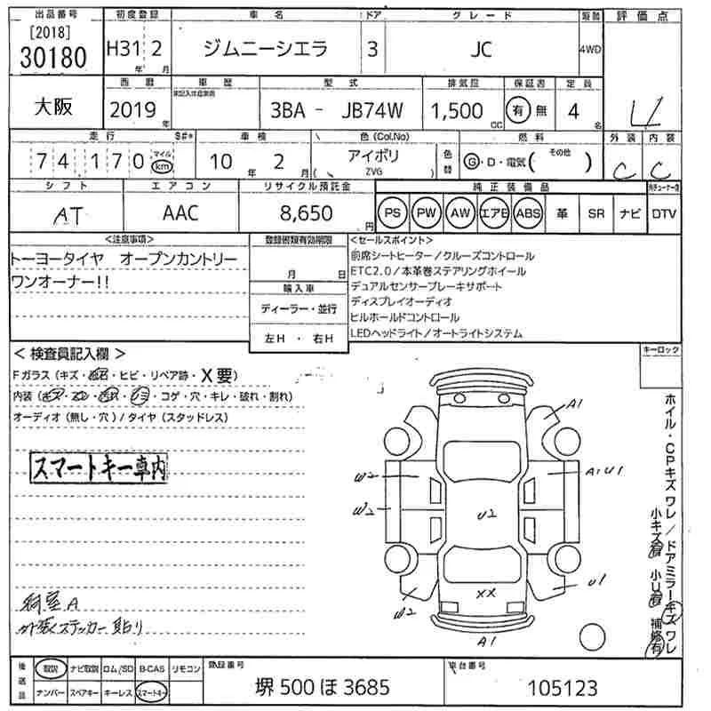 Suzuki JIMNY SIERRA с аукциона Японии MIRIVE Osaka лот № 30180