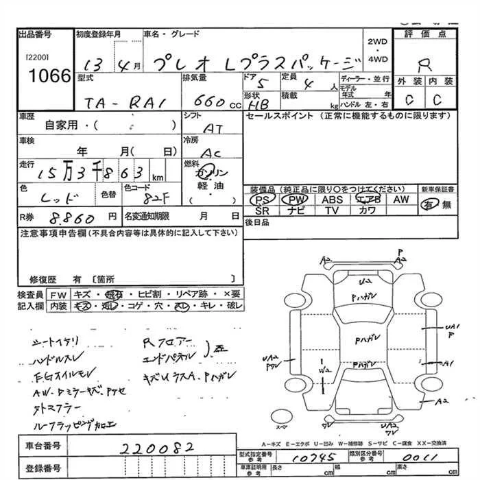 Subaru PLEO с аукциона Японии JU Gunma лот № 1066
