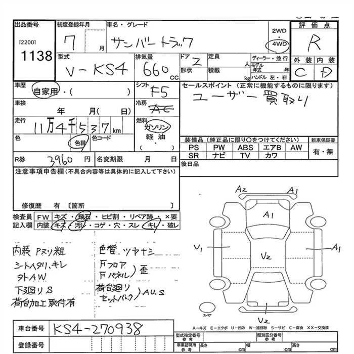 Subaru SAMBAR с аукциона Японии JU Gunma лот № 1138