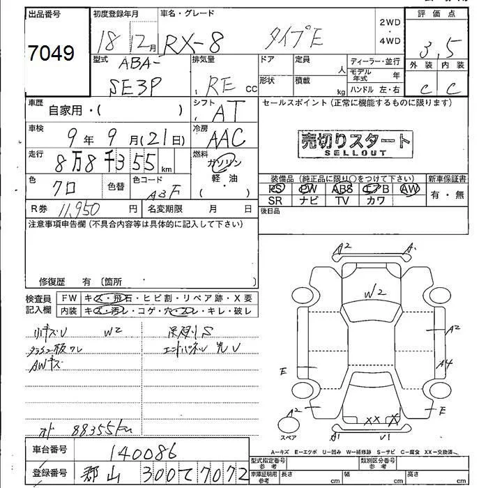 Mazda RX-8 с аукциона Японии JU Fukushima лот № 7049