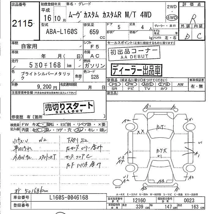 Daihatsu MOVE с аукциона Японии JU Fukushima лот № 2115