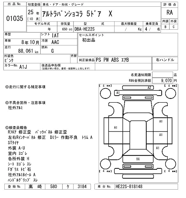 Suzuki ALTO LAPIN с аукциона Японии ARAI Oyama лот № 1035