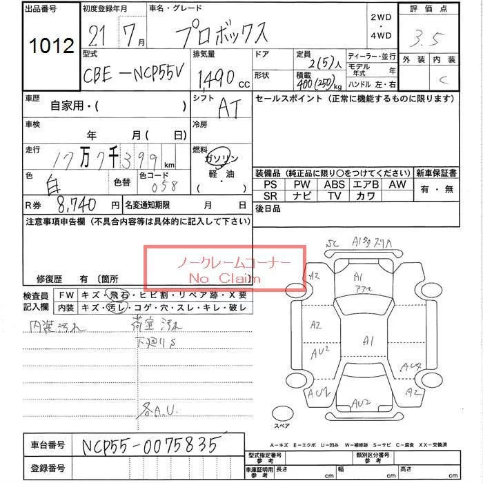 Toyota PROBOX с аукциона Японии JU Toyama лот № 1012