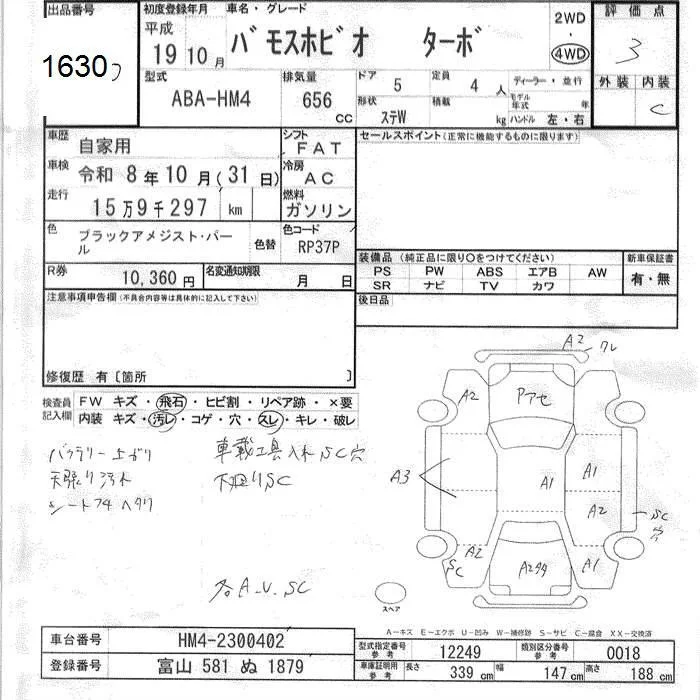 Honda VAMOS с аукциона Японии JU Toyama лот № 1630